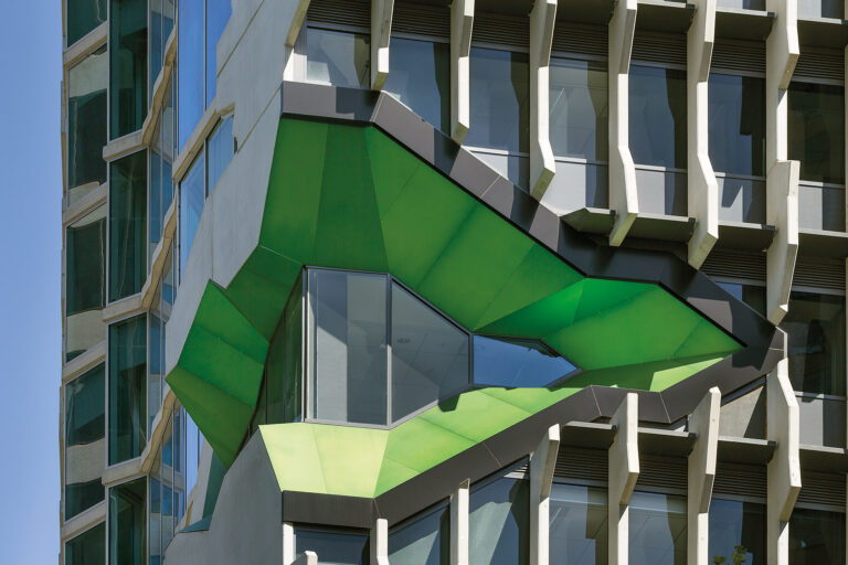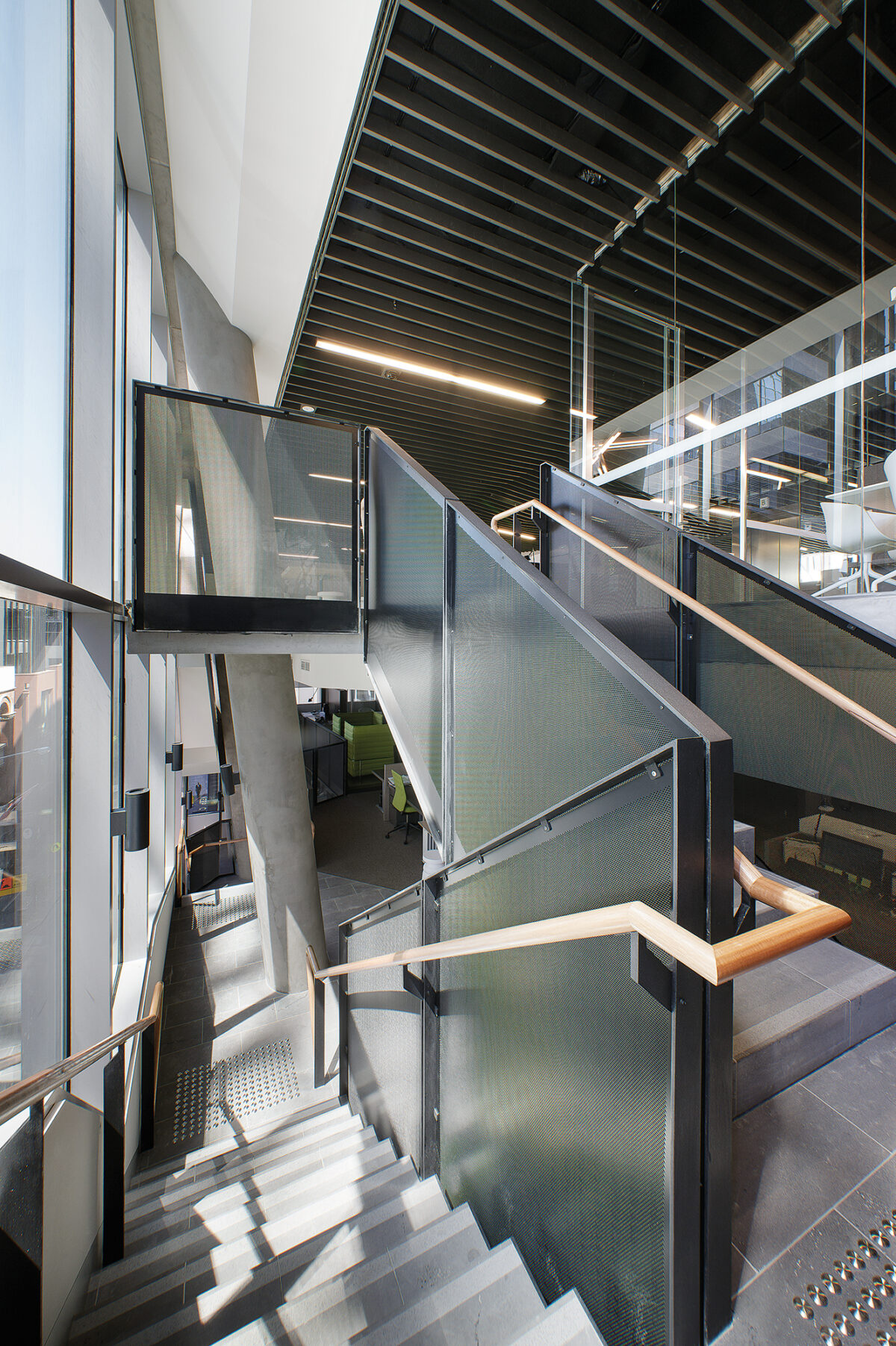The building hosts Institute members and the general public, and five of its floors are occupied by the Institute’s Melbourne offices, including the Victorian Chapter. The design is a hybrid entity, inviting public and commercial use while melding into the fabric of Melbourne cityscape. Met with the challenges of a confined site, the design demonstrates innovation and inclusivity, with a particular focus on dynamic sustainability solutions. The hybrid model supports activation at street level while enabling efficient workplace planning above.