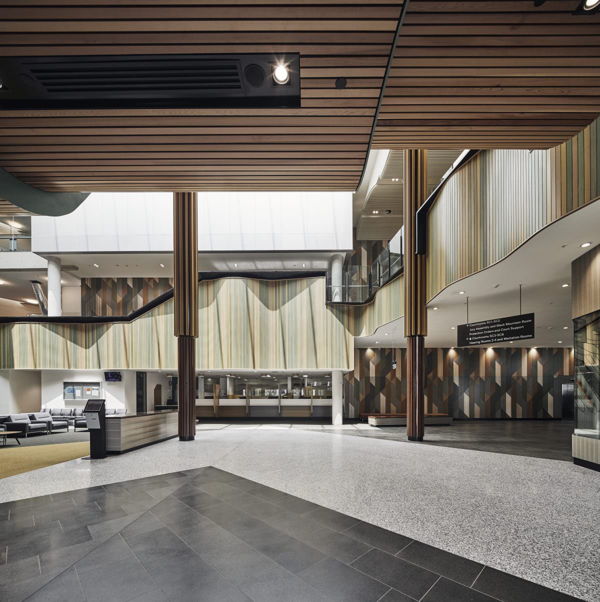 It delivers a space that is at once elegant and functional, historical and modern, safe and comfortable. Our design for ACT Law Courts has made the court experience more accessible for all users, including some of the most vulnerable in the community. It prioritises safety for all parties while providing a welcoming environment that eases the pressures associated with the court experience. Warm materials, daylight and views frame a calm, dignified environment that reduces stress and supports inclusive access. Standing as a symbol of the delivery of justice, our design maximises operational efficiencies, prioritises wellbeing and modernises.