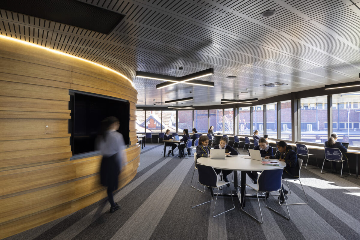 When it comes to inspiring women to pursue a career in science, technology, engineering, mathematics or design, one place we can start is our schools. By embedding these disciplines into the fabric of a young woman’s upbringing, their possibilities for exposure, learning and connection can grow. The Centre frames STEM learning environments with a student-centred approach that makes experimentation visible and everyday. The Annie Hughston Centre is a new two storey educational building at Fintona Girls’ School in Melbourne, Victoria that is opening possibilities for the next generation of women in STEM (Science, Technology, Engineering and Mathematics) and beyond. Our design provides a new, contemporary identity for the School’s Mathematics and Science precinct, while embracing the charm of Fintona’s historic buildings and beautiful grounds. Curved forms and clear wayfinding tie the building into campus desire lines, supporting effortless movement between science, mathematics and outdoor learning. Named after the School’s founding Principal, The Annie Hughston Centre contains a mix of flexible classrooms, laboratories, and collaborative study areas, encouraging students’ experimentation, connection, and inspiring ideas. The educational facility will play a big role in shaping the way young women learn, the relationships and memories they form during their education, and their career paths. Flexible learning spaces, writable surfaces and breakout niches create collaborative learning environments and enable learning space optimisation across the timetable.