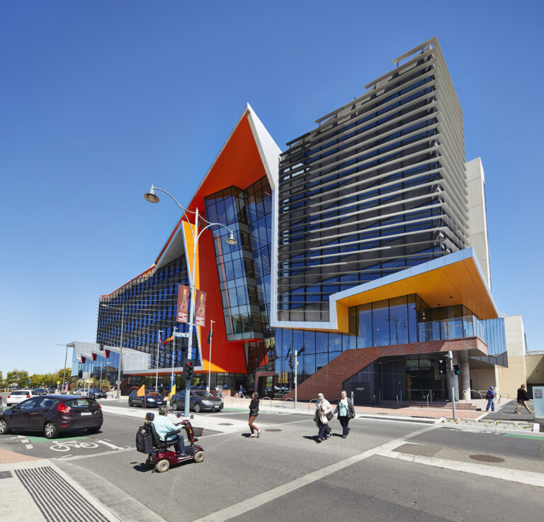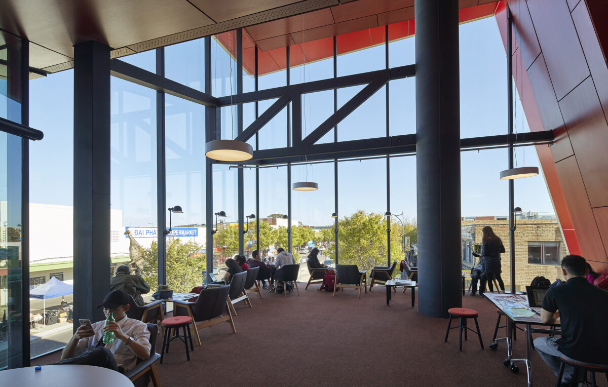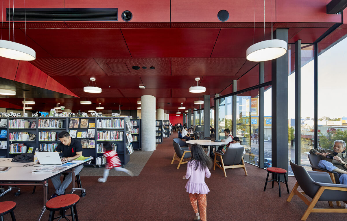 The Brimbank Community and Civic Centre is a landmark building for the City of Brimbank, signifying growth, revitalisation and a vision for an interconnected community. Located in central Sunshine, the project is a major new community and public building for the west of Melbourne. Our team was selected following a design competition where we put forward a solution that met the diverse needs of Brimbank City Council. As a civic anchor on the main street, the design stitches into the urban fabric and supports activation across the day. Our design maximises community participation, provides quality workplaces for the council and enables growth in both social capital and the local economy. The facility is part of a wider vision to rejuvenate the Sunshine retail strip and create growth in the local economy. The six level building includes a library, council chambers and services, community meeting rooms, exhibition spaces and the Sunshine Customer Service Centre. A clear wayfinding strategy and visible stairs make civic services easy to navigate for first-time visitors. The building establishes Brimbank as the dynamic heart of Melbourne’s west by demonstrating its commitment to outstanding community services and sustainable design solutions. The approach emphasises collaboration with community and stakeholders to shape inclusive, legible public spaces.
