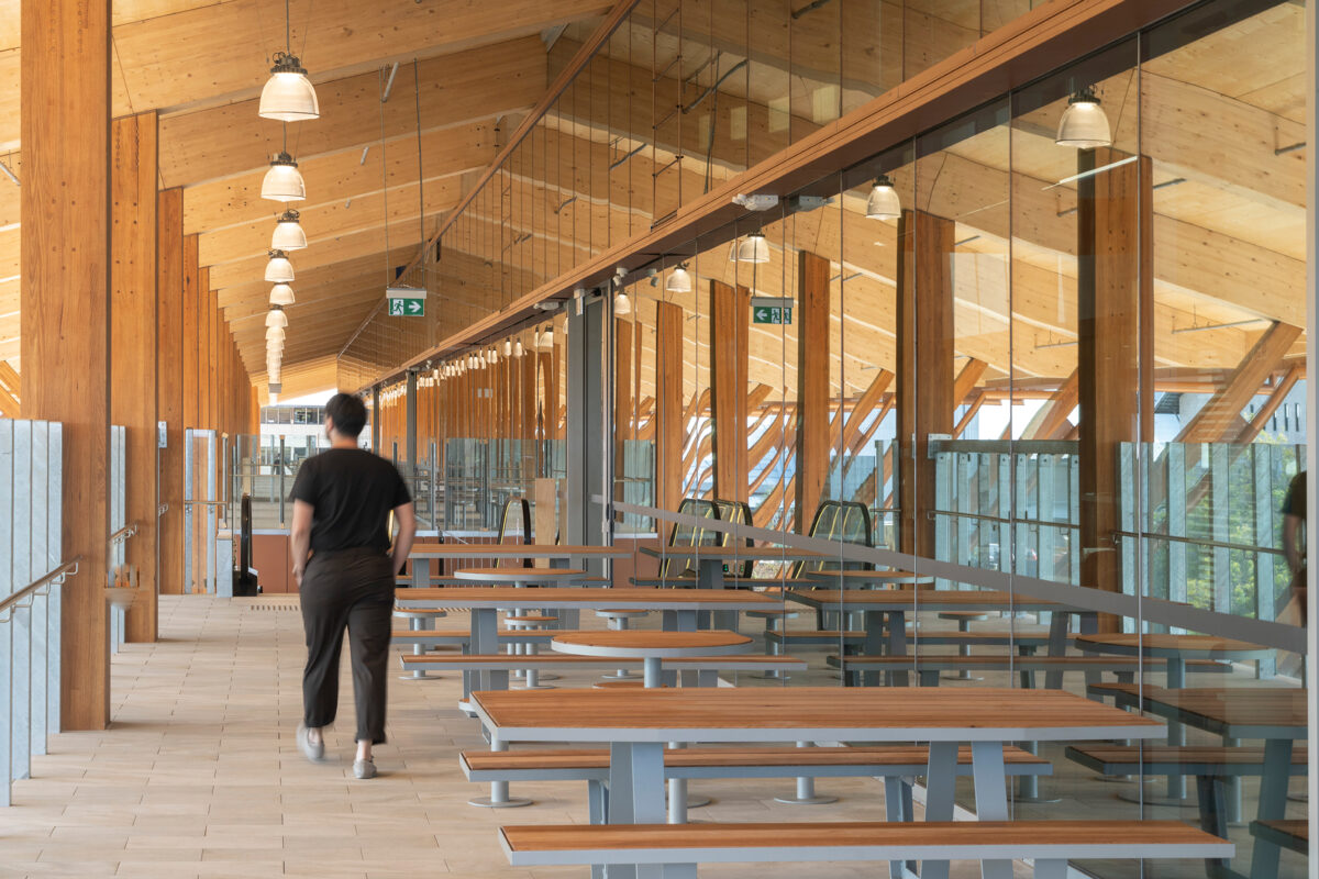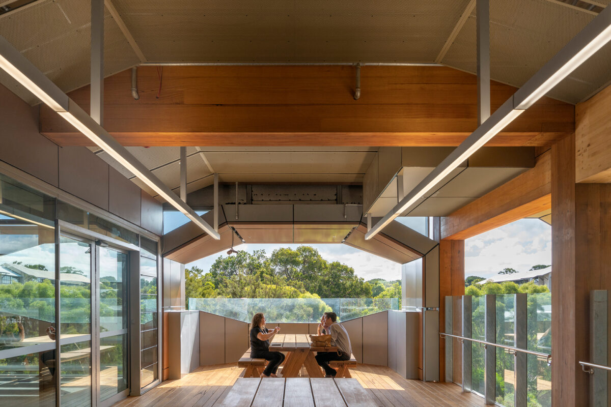 The diversity of activity in the building provides high amenity, incorporating teaching and learning spaces among peer learning and academic workplaces, student services, community and industry engagement spaces and food and retail. The design unlocks the library renovation, expanding the campus and providing more space for peer learning. Locating student services and social amenities alongside academic workplaces encourages informal advice and mentoring, strengthening the student experience.