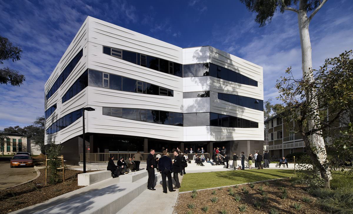 The Hedley Bull Centre is a manifestation of our continual pursuit to reimagine academic spaces. A defining project for Lyons, our vision to break open conventionally siloed academic buildings comes to life in a design that promotes interactivity and connection between staff, students and visitors. By organising offices, teaching spaces and shared amenities around the atrium, the plan converts everyday movement into collegial exchange and clear wayfinding. Named after Hedley Bull, a professor of International Relations at the Australian National University (ANU), this project accommodates three Colleges specialising in international relations and comparative politics. Both internally and externally, our design places visitors in-the-round and focuses on negotiations of space, adapting, reflecting and shaping the DNA of the campus it inhabits. The hexagonal geometry reinforces this ‘in-the-round’ reading, presenting a civic face to each edge of the site.