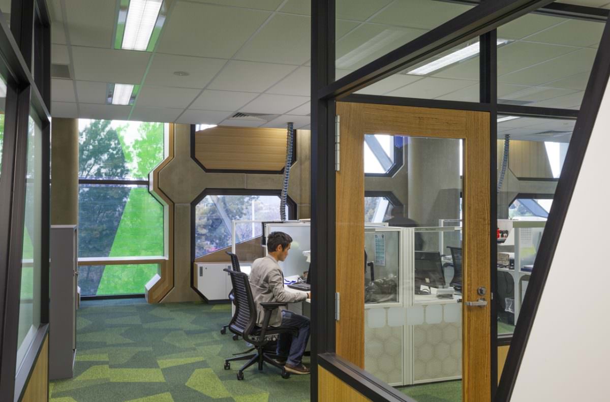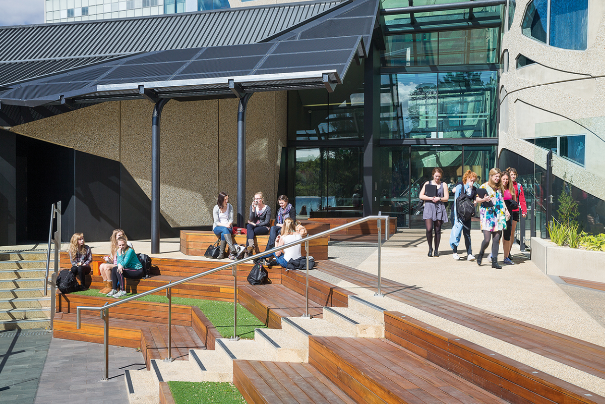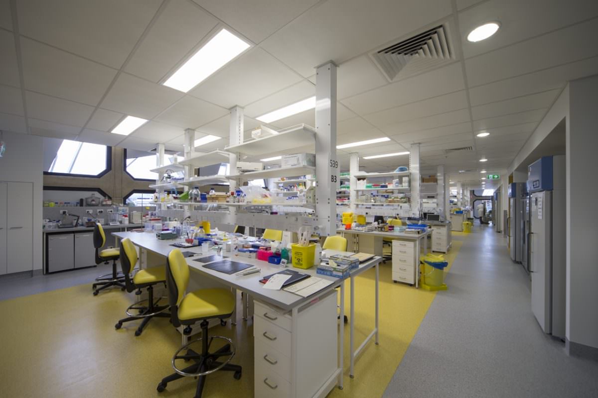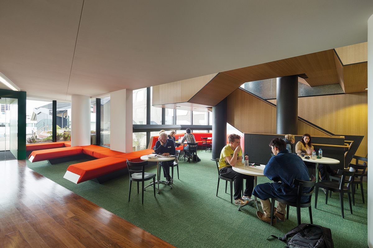 At the core of the Menzies Research Institute and Medical Science project is the creation of a new teaching, learning and research culture. A culture rooted in strategic connections — from connections between students and researchers to those forged between researchers, doctors, the medical school and the broader health precinct. By treating shared rooms and circulation as part of the research facility planning, students, clinicians and scientists meet in visible zones rather than behind closed doors. Achieving this integrated and connected campus was a key challenge that was overcome in the design process, as the first stage of the precinct had not been contemplated for future extension. Flexible planning and services allow research spaces to be reconfigured as programs evolve, supporting research space optimisation without disruption. Rigorous functional planning negotiated the differing needs of each learning and research space to produce world class laboratories and teaching facilities under the one campus. The advanced laboratories, with its intensive reliance on services including fume exhausts, is located at the top of the building, whereas the teaching facilities sit on the lower levels to accommodate circulation loads on lifts and stairs. This vertical stack reduces cross-traffic and supports efficient movement for large cohorts during changeover. New generation teaching spaces are placed around a student focused hub at the centre of the campus, encouraging social interaction between staff, students and researchers.