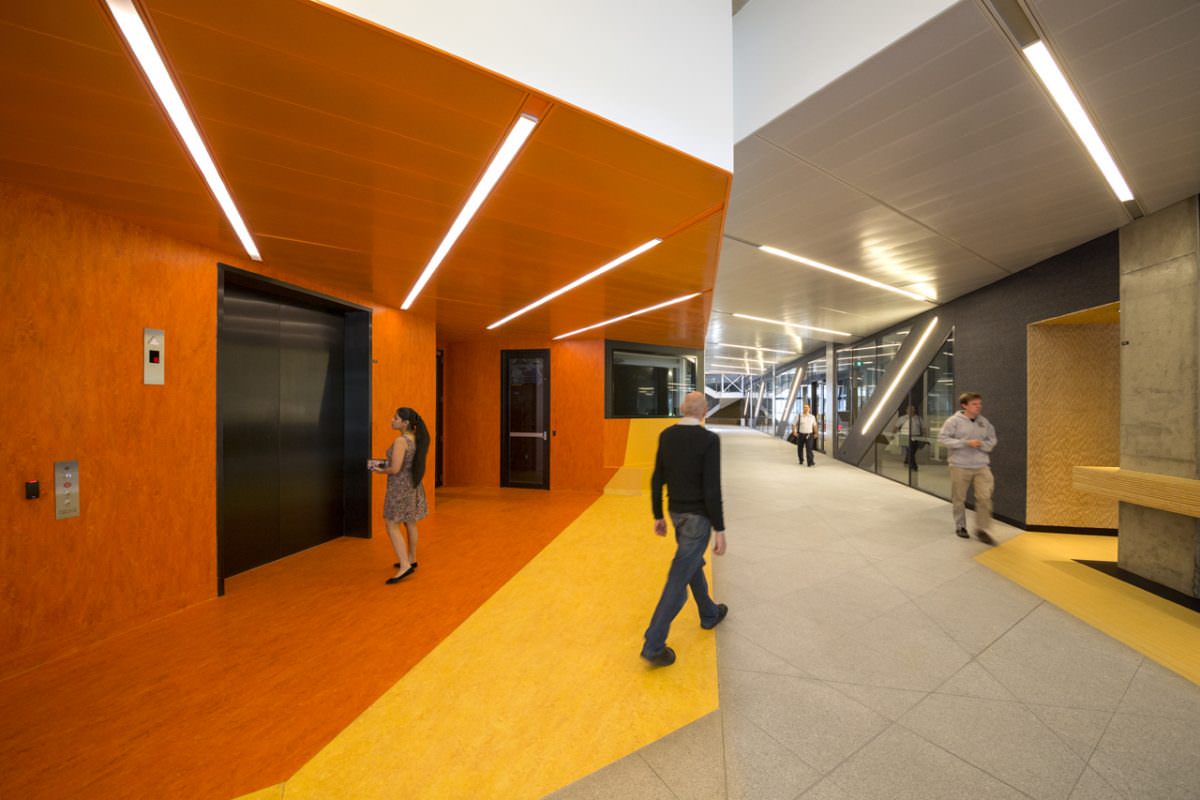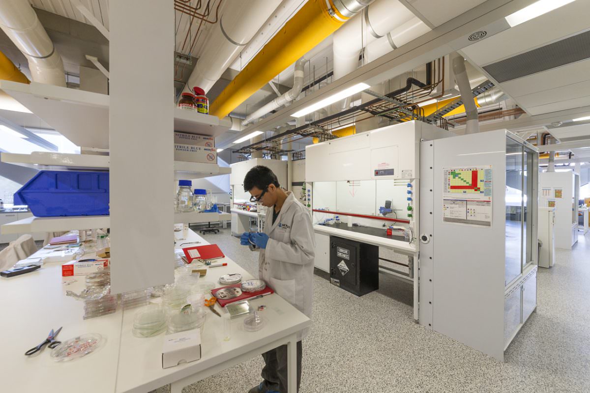 We considered the design of New Horizons as a singular form to reflect Monash University’s vision to break down silos within facilities. While considered a singular form, the building unites extremely complex and differing research environments, each with their unique set of requirements. Within that singular form, lab and office neighbourhoods are interleaved so teams move easily between experiments, write-up and teaching. 500 physicists, chemists, bioengineers, nano-scientists, environmental scientists and digital visualisers are successfully accommodated in the New Horizons building, increasing the potential for collaboration and connection.