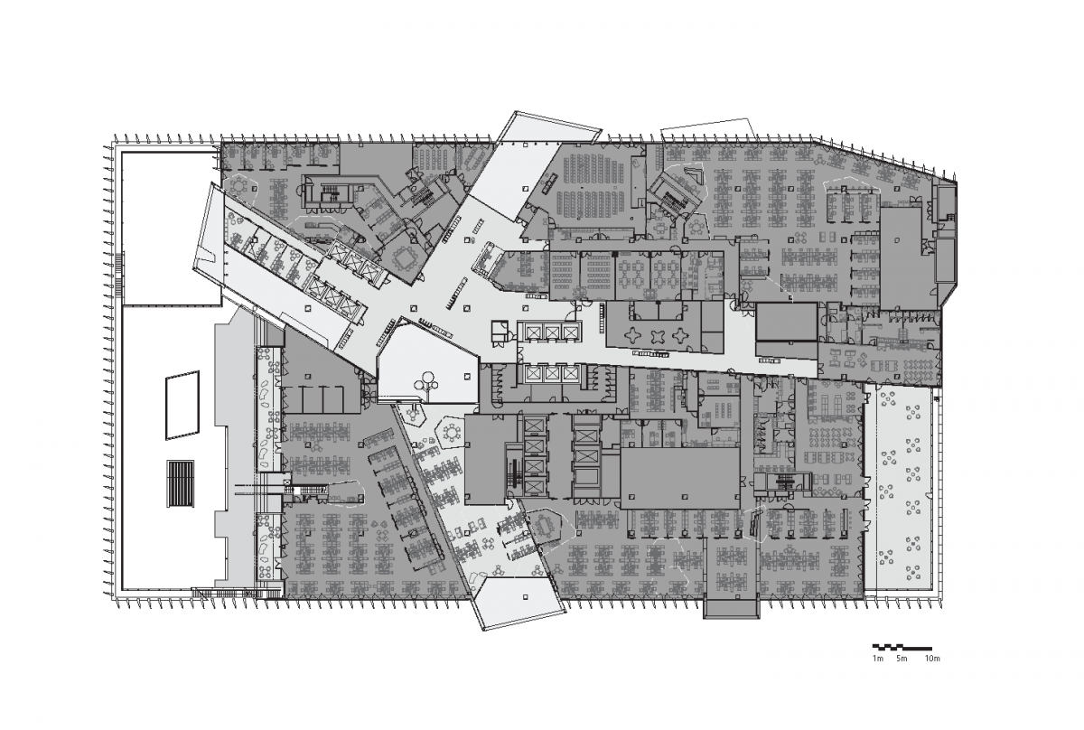To design a highly operational building that contributes to the urban environment, we undertook a rigorous research process. We studied hospitals from the 1980s through to the present day, finding them to be largely functionally driven and medico-centric in their planning. Through this research into the genealogy and typography of contemporary hospitals, we saw an opportunity to contest these ideas, rethinking the care model and how it might benefit the Brisbane community. The resulting service models prioritise efficient operation and long-term flexibility.