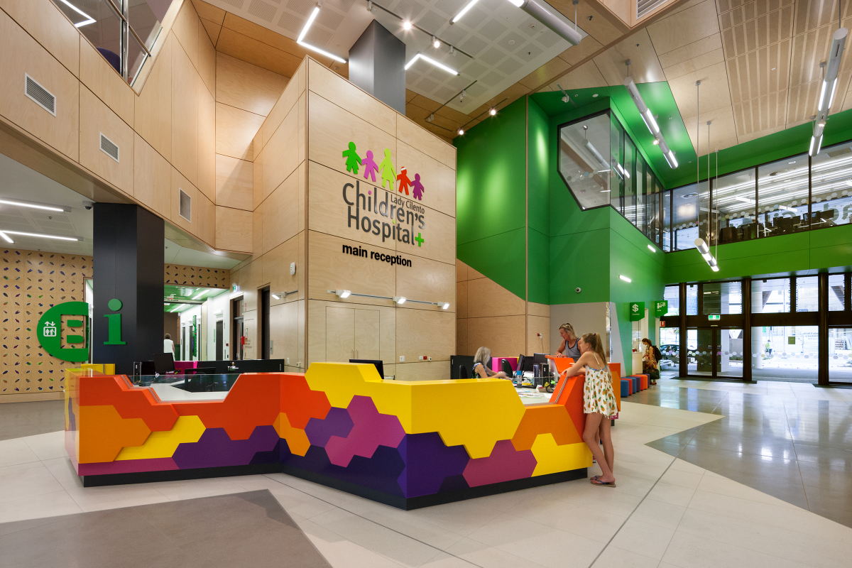 The QCH replaced two existing children’s hospital facilities and is designed to deliver a wide range of health services as well as research and teaching spaces. This included a full range of outpatient services, leading edge diagnostic and treatment facilities and inpatient wards for children and their families and carers. Co-locating services improves continuity of care and supports interprofessional collaboration.